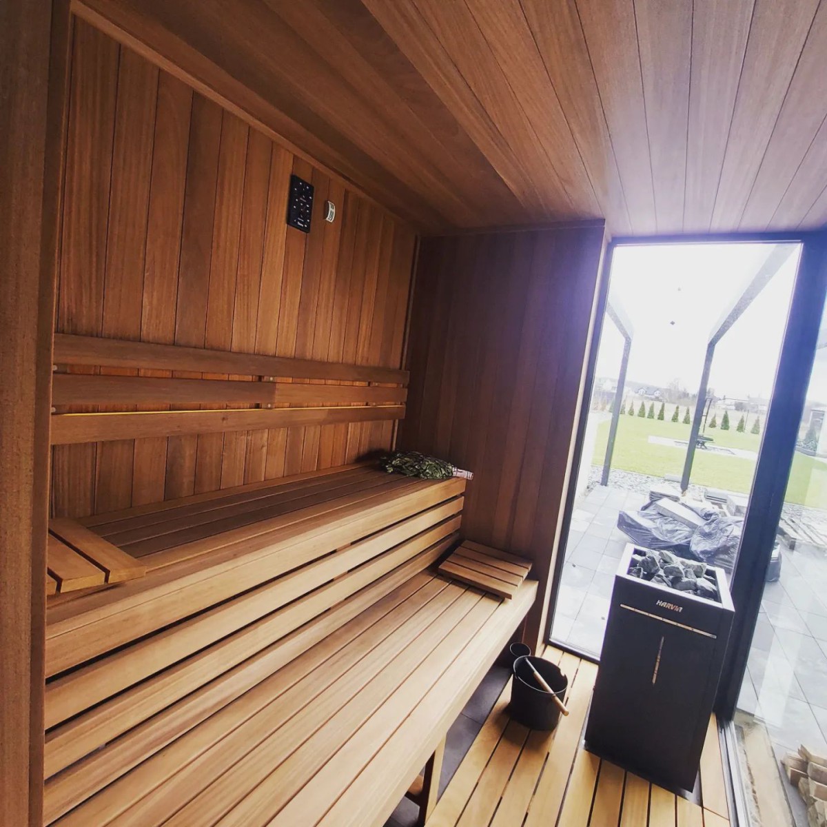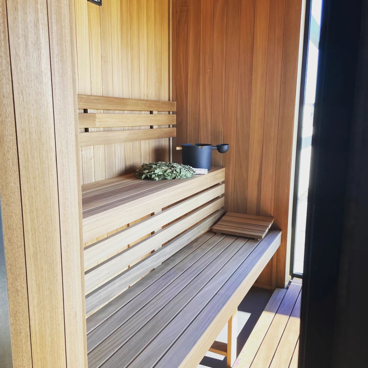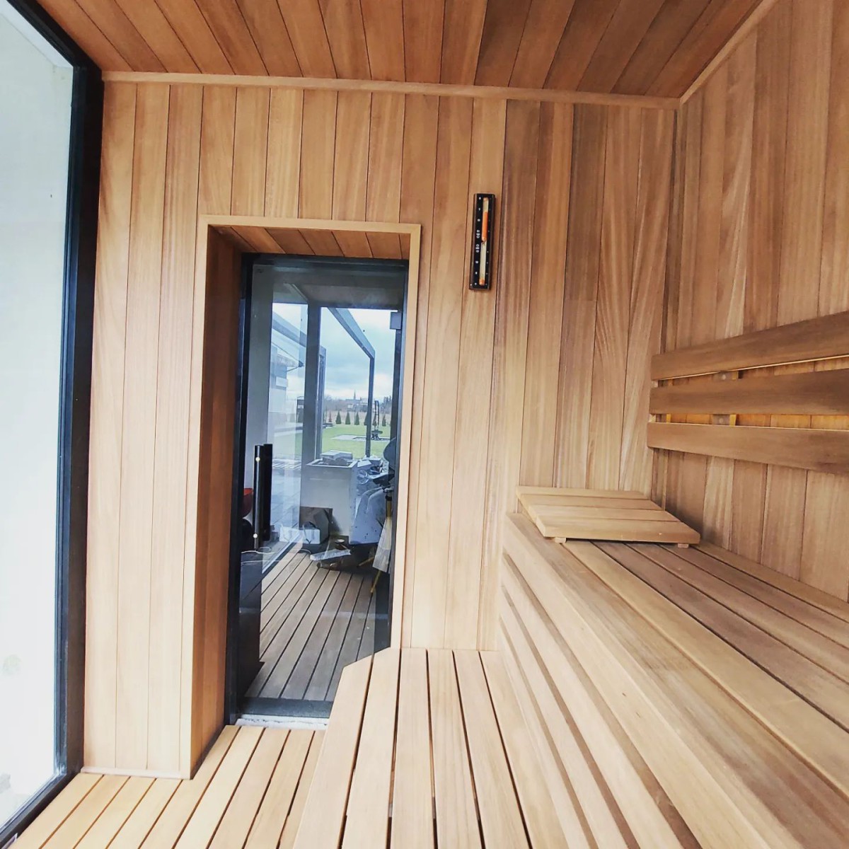 Cała sauna wykonana z abachi termo.