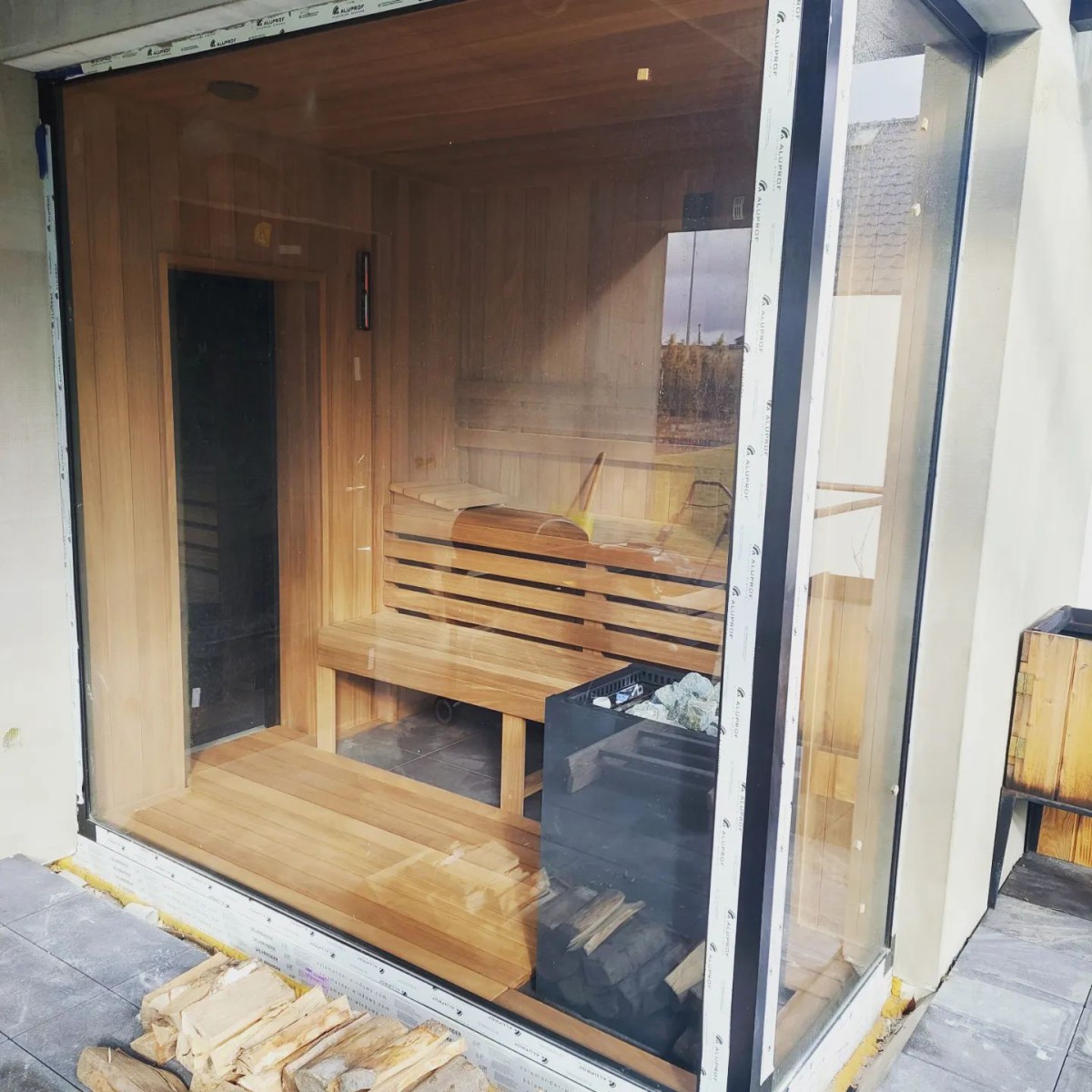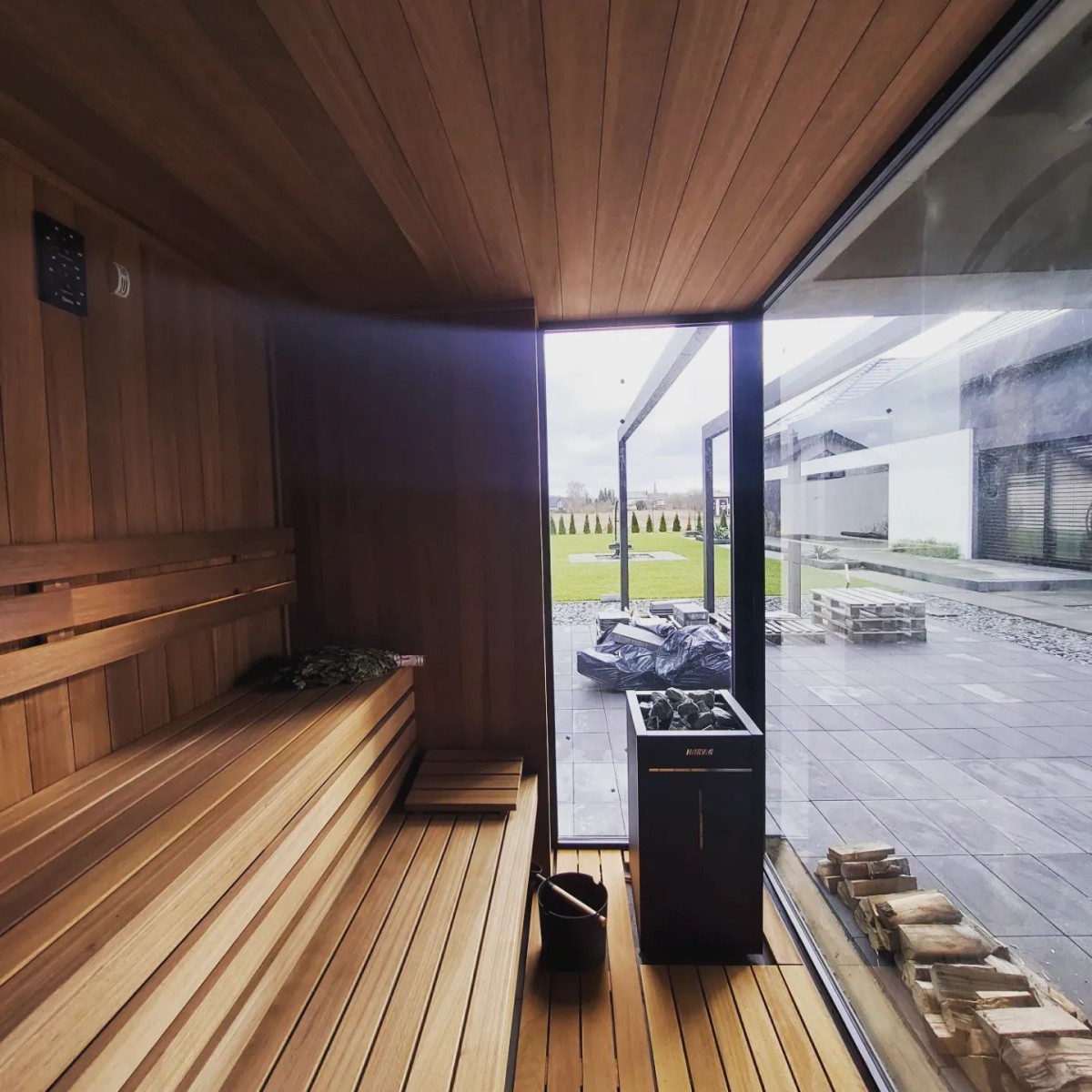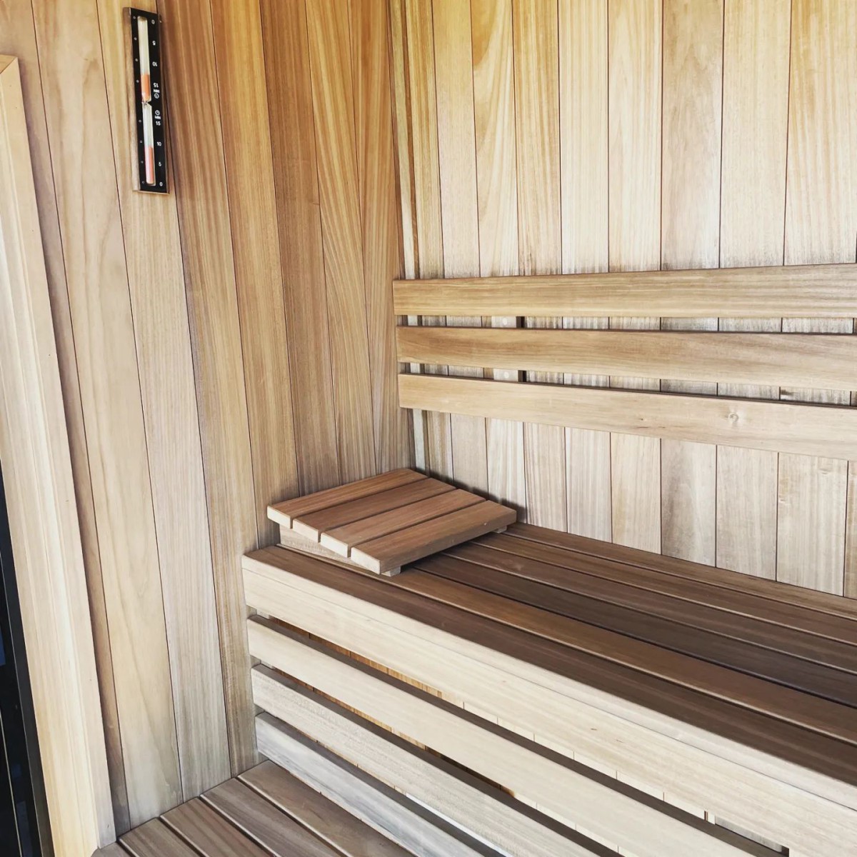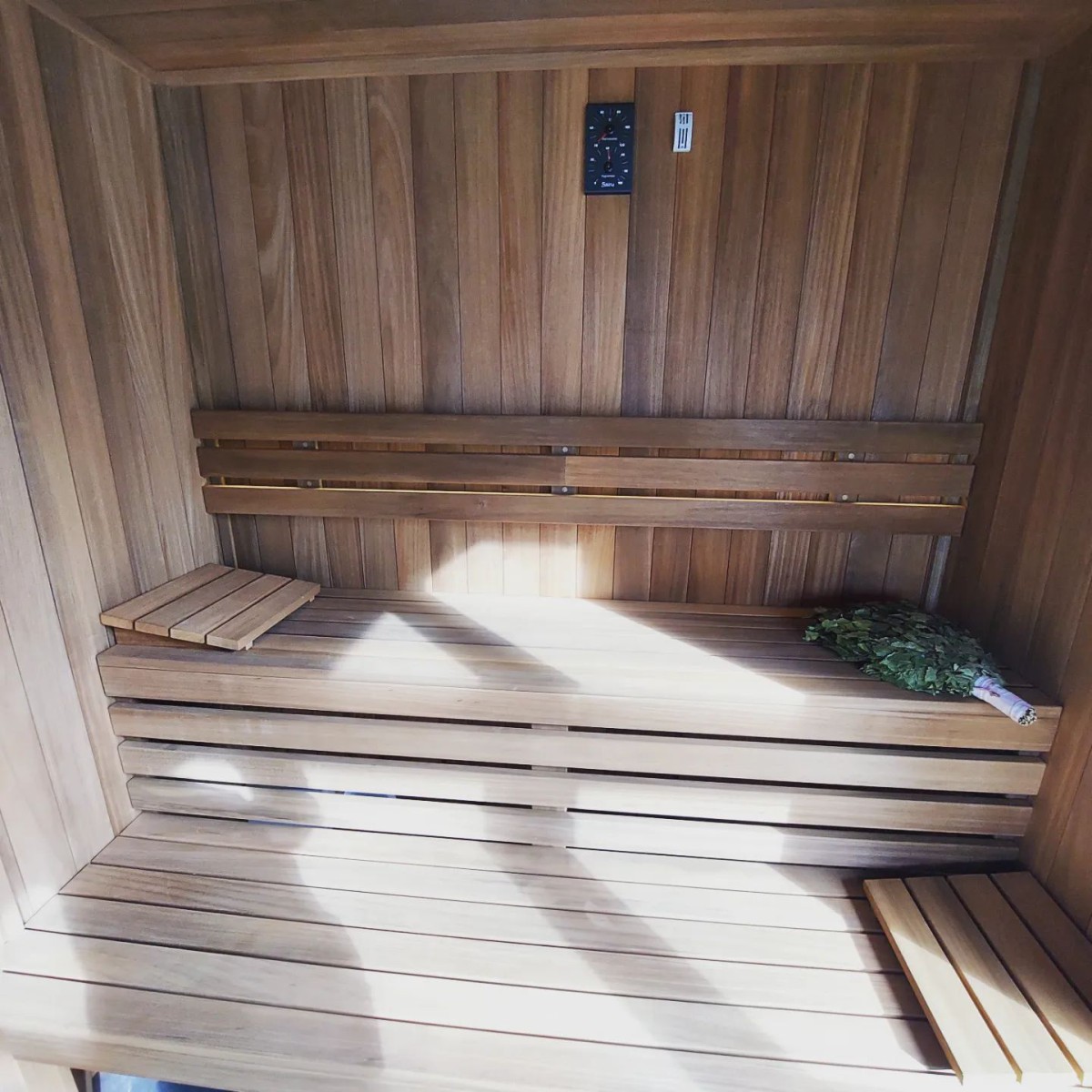 Cała sauna wykonana z abachi termo.