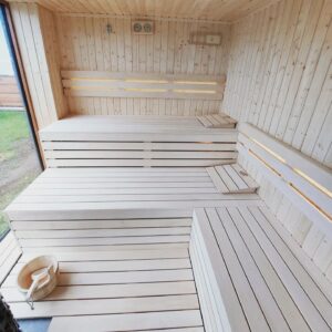 Pracujemy wyłącznie na materiałach przeznaczonych do wysokich temperatur: świerk skandynawski, lipa, osika. Dzięki temu sauna jest trwała, bezpieczna i odporna na warunki panujące wewnątrz.